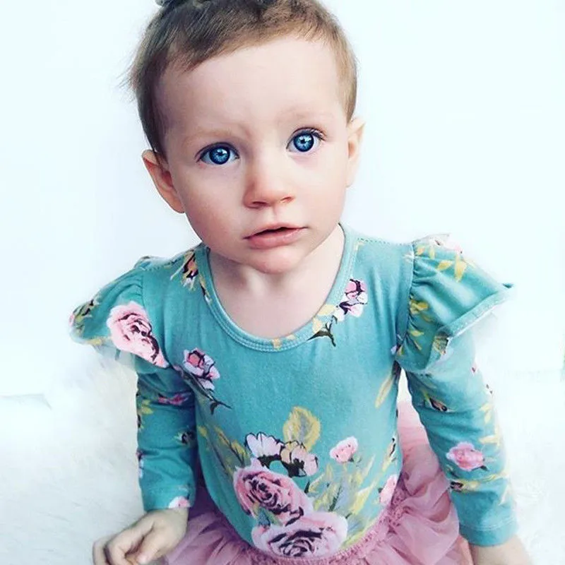 Affordable Volants coton nouveau-né à manches courtes bébé filles justaucorps hauts à manches longues bébé vêt