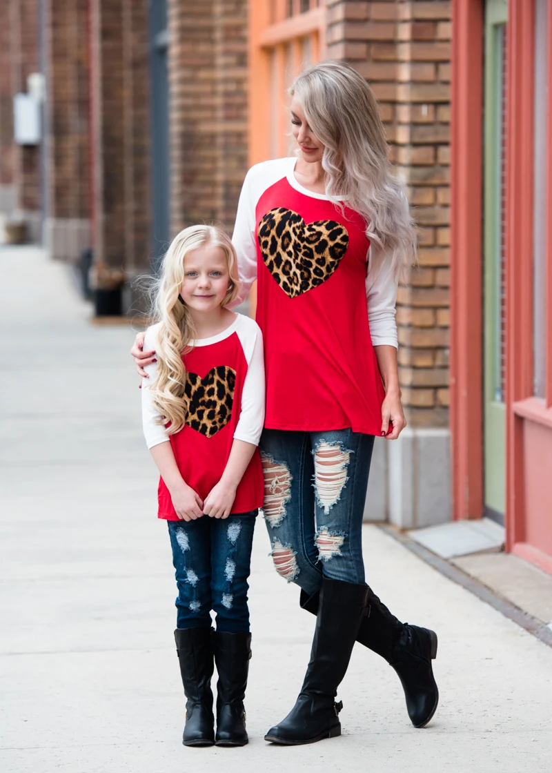 Refurbished Léopard amour coeur mode famille correspondant tenues ensemble à manches longues coton mère fille f